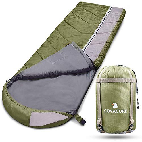 【Outdoor Schlafsack für Sommer】Der Schlafsack COVACURE 210 * 80 cm ist für einen guten Schlaf nach einem ganzen Tag im Freien konzipiert. Es kann für den Sommer verwendet werden, Komfort bei Temperaturen über 18 ° C.\n【Hochwertiges Material】Hergestellt aus 210T reißfestem Polyestergewebe, wasserdicht und atmungsaktiv. Füllmaterial: 100% seidenartige Baumwolle mit guter Elastizität, flauschig und warm.\n【Komfortables Design】 Das Design des Reißverschlusses am Boden des Schlafsacks kann Ihre Füße befreien und mehr warme oder kalte Luft ein- oder austreten lassen. Die halbrunde Kapuze mit verstellbarem Kordelzug hält den Kopf warm. Mit all diesen Designs werden Sie sich in der Sommernacht wohler fühlen.\n【Einfaches Tragen & Waschen】Der COVACURE Schlafsack kann sauber gewischt oder in der Maschine gewaschen werden, wodurch er vielseitig und bequem ist. Es kann in 31 * 5 * 5 cm in 0.83 kg gefaltet werden, kommt mit einem Kompressionssack mit Riemen, ermöglichen eine bequeme Lagerung und einfaches Tragen.\n【100% Lebenslange Garantie】Sie müssen sich keine Sorgen machen, wenn Sie Ihr Geld riskieren. Wenn es dir nicht gefällt, lass es uns einfach wissen. Wir sorgen dafür, dass Sie eine VOLLSTÄNDIGE RÜCKERSTATTUNG erhalten, KEINE FRAGEN GESTELLT! Kundenzufriedenheit hat für uns oberste Priorität!