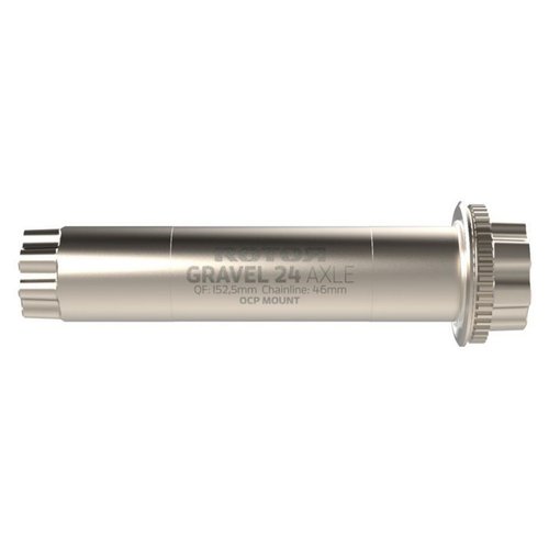 Rotor Road/Gravel Achse 24 mm. Die Rotor Achse 24 mm verfügt über eine clever gestaltete Spline-Schnittstelle, die bei der Montage an der Spider oder an Direct Mount-Kettenblättern für einen robusten und dennoch sanften Eingriff sorgt, sodass Sie die Effizienz der Kraftübertragung bei Ihrer Pedalrotation maximieren können. In Kombination mit den modularen Vegast®- und Aldhu®-Kurbeln von Rotor und den ovalen Q RINGS-Kettenblättern oder runden Kettenblättern verfügt die innovative Achse über die verbesserte OCP Mount-Technologie, mit der Sie Ihre optimale Kettenblattposition jetzt in präzisen Schritten von einem Grad einstellen können. Nutzen Sie Ihr einzigartiges OCP, um einen effizienteren Pedalhub zu ermöglichen, die Belastung der Knie zu reduzieren und möglichen Verletzungen vorzubeugen.Spezifikationen:- Kettenlinie: 46 mm- Q-Faktor: 152.5 mm- Gewicht: 145.5 g - Material: Stahl- Achslänge: Offset- Kurbelwellendurchmesser: 24 mm