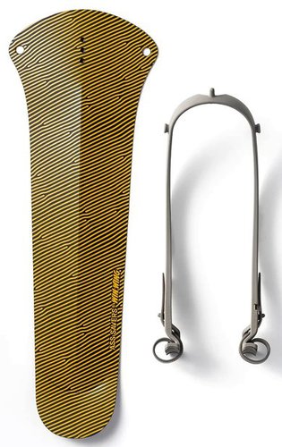 Das vielseitigste aufsteckbare Schutzblech, das du je verwendet hast. Der Schlüssel zum Verständnis, wie der Win Wing funktioniert, liegt in der Physik: Wasser und Schlamm verlassen das Rad in einer geraden Linie ab dem Tangentialpunkt der Freisetzung. Indem der Win Wing nur das obere hintere Viertel des Rades abschirmt, verhindert er, dass Spritzwasser die wichtigen Bereiche des Fahrers erreicht, und das mit minimalem Materialaufwand. Richtig montieren, fest anbringen Damit die Tangentialabdeckung ordnungsgemäß funktioniert, muss das Schutzblech sehr nah am Rad angebracht werden. Strebe nach 5-10 mm Reifenabstand für maximale Abdeckung. Der richtige Winkel Genauso wichtig wie ein enger Sitz ist der Winkel des Schutzblechs. Es gibt drei verschiedene Einstellungen, um den Winkel deiner Sitzstreben auszugleichen. Wähle diejenige, die eine horizontale oder aufsteigende Position ermöglicht. Vermeide einen absteigenden Winkel, da dies die Effizienz des Schutzblechs reduziert. Fest zurren Die Gurte bestehen aus ultra-robustem TPU und sollten so fest wie möglich von Hand angezogen werden. Wenn du feststellst, dass das Schutzblech nicht stabil ist, versuche, das nächste Loch im Gurt zu verwenden. Schütze, was du liebst Ass Savers haben den Win Wing so schonend wie möglich für dein Fahrrad gestaltet, mit weichen Gummifüßen, die deinen Rahmen sanft umschließen. Doch alles, was für längere Zeit an dein Fahrrad geschnallt ist, wird Spuren hinterlassen. Wenn du sehr darauf bedacht bist, das neue Aussehen deines Fahrrads zu erhalten, denke bitte daran, Schutzband an den Stellen anzubringen, an denen dein Win Wing befestigt ist. Anti-Verklemmung So robust es ist, das Design des Win Wing erlaubt es ihm, sich im Falle eines Unfalls zu biegen, und es ist so konstruiert, dass es sich im Falle von großen Naturstücken, die am Rad haften bleiben, nicht verklemmt. Diebstahlschutz Wenn du es dauerhaft an deinem Fahrrad befestigen möchtest, kann der Win Wing mit einem herkömmlichen Kabelbinder durch einen dafür vorgesehenen Schlitz am Fahrrad gesichert werden, was es Dieben erschwert. Zuverlässig Dank seiner raffinierten Einfachheit und der sorgfältigen Auswahl der Materialien ist der Win Wing nahezu unzerstörbar. Mit nur vier Komponenten (Wettbewerber verwenden oft bis zu 40 Komponenten) gibt es nicht viel, was schiefgehen kann. Der glasfaserverstärkte Gabelhalter ist sowohl flexibel als auch robust, und die Gummibänder sind nahezu unzerstörbar. Vor dem Gebrauch falten Das Geheimnis, ein flaches Kunststoffstück in ein funktionierendes Schutzblech zu verwandeln, liegt im Vorabfalten. Alle Rillenlinien wurden sorgfältig entwickelt, um Verriegelungsmechanismen, Selbstzentrierungsfähigkeiten, Federspannung und Materialausdauer zu erreichen. Bitte nimm dir die Zeit, die Anweisungen sorgfältig zu lesen oder das Anleitungsvideo anzusehen, um die beste Leistung zu gewährleisten. Nachhaltigkeit Das schwarze Schild besteht aus 80% recyceltem PP, und der Win Wing wurde für eine effiziente Lieferung und einfaches Recycling konzipiert. Jede Komponente kann separat erworben werden, was Reparaturen und Upgrades bequem macht. Der Win Wing wird zu 100% in Schweden in ISO-14001-zertifizierten Fabriken hergestellt." Spezifikationen Maße: 375 x 85 mm Gewicht: 72 g Material: Schutzschild- 0,9 mm PP (Polypropylen), Gabelhalter - glasfaserverstärktes PA (Polyamid oder Nylon) und Gurt - TPU (thermoplastisches Polyurethan). Vollständiger Schutz für den hinteren Fahrer ab dem Knie aufwärts Wishbone-Befestigungssystem Sekundenschnelle Anbringung an jedem Fahrrad, kein Werkzeug erforderlich Ultraleicht Geeignet für Reifenbreiten bis zu 60 mm WGS-2 Win Wing Gravel Spritzschutz HR golden groove, Ass Savers