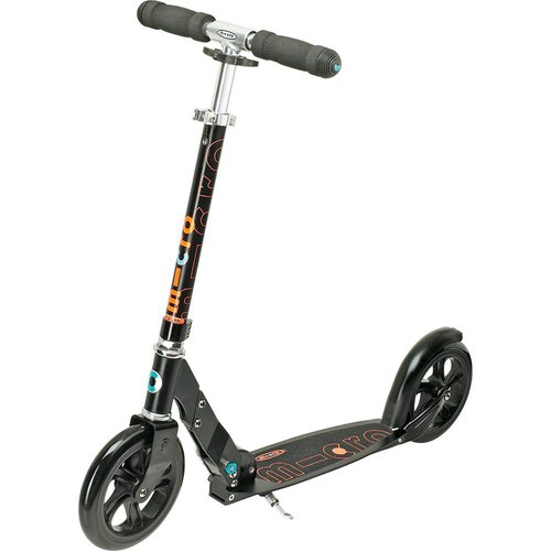 Extravagantes Styling mit extragroßen Rollen für müheloses Gleiten; extra lange Lenkstange für Erwachsene; Scooter Ständer.