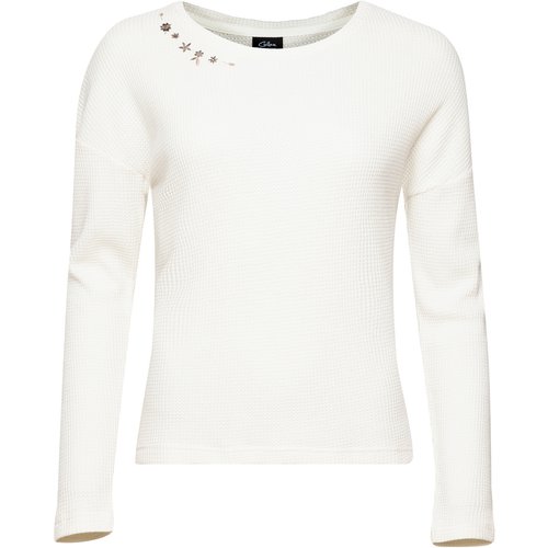 Leichtes Damen-Longsleeve mit Wabenstruktur und floraler Stickerei – ideal für entspannte Wanderungen, Yoga oder deinen Alltagslook