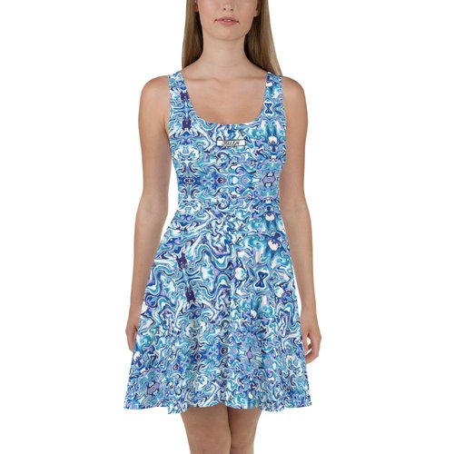 Produktion in Lettland (EU) Kleide dich mit diesem ärmellosen Skater-Kleid! Das weiche Material und der ausgestellte Rock verleihen ihm einen eleganten Twist, der das aufwendige Design mit einer schönen Lebendigkeit hervorhebt.  • 82 % Polyester, 18 % Elastan • Glatter und elastischer Stoff • Mittellanger, ausgestellter Rock • Elastische Taille • Overlock-Stich, Überdeck-Saum Größentabelle   XS S M L XL 2XL 3XL Brust (cm) 84 88 92 100 108 116 124 Taille (cm) 64 68 72 80 88 96 104 Hüfte (cm) 90 94 98 106 114 122 130