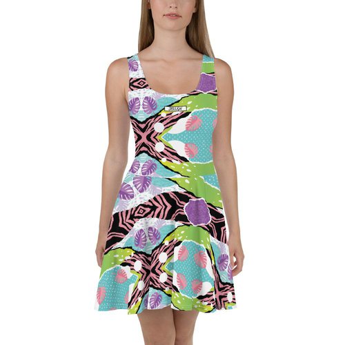 Produktion in Lettland (EU) Kleide dich mit diesem ärmellosen Skater-Kleid! Das weiche Material und der ausgestellte Rock verleihen ihm einen eleganten Twist, der das aufwendige Design mit einer schönen Lebendigkeit hervorhebt.  • 82 % Polyester, 18 % Elastan • Glatter und elastischer Stoff • Mittellanger, ausgestellter Rock • Elastische Taille • Overlock-Stich, Überdeck-Saum Größentabelle   XS S M L XL 2XL 3XL Brust (cm) 84 88 92 100 108 116 124 Taille (cm) 64 68 72 80 88 96 104 Hüfte (cm) 90 94 98 106 114 122 130
