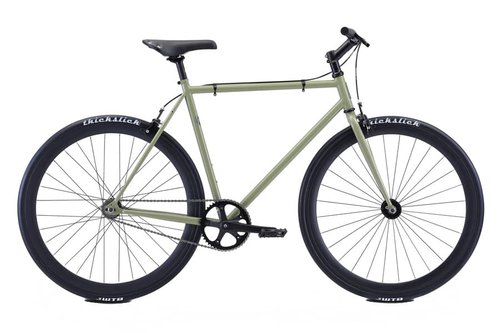 Das Fuji Bikes Declaration Fixie / Singlespeed Fahrrad in Khaki Green ist ein stylisches und zuverlässiges Fahrrad, das sich perfekt für die Stadt eignet. Der Rahmen besteht aus Fuji Hi-ten Stahl und verfügt über ein Chromoly-Sitzrohr, was dem Fahrrad eine hohe Stabilität und Haltbarkeit verleiht. Die Gabel besteht ebenfalls aus Fuji Hi-Ten Stahl und ist robust genug, um den harten Anforderungen des urbanen Fahrens standzuhalten.Das Fahrrad verfügt über eine einfache Kurbelgarnitur mit 46 Zähnen und ein abgedichtetes Patronenlager im Tretlager, das ein reibungsloses und zuverlässiges Treten garantiert. Die Aluminium-Laufräder mit hohem Profil und rostfreien Speichen tragen zu einem reibungslosen und stabilen Fahren bei. Die dicken Slick-Reifen in der Größe 700x28c sorgen für zusätzliche Haftung und Stabilität auf der Straße.Das Fuji Bikes Declaration verfügt über eine leistungsstarke Dual-Pivot-Bremse aus Aluminium und Legierungs-Bremshebel, die eine effektive und zuverlässige Verzögerung ermöglichen. Der Lenker und der Vorbau bestehen aus Legierung und bieten eine komfortable und ergonomische Fahrposition.Das Retro-Niete-Sattel und die Legierung-Sattelstütze sorgen für zusätzlichen Komfort und Unterstützung beim Fahren. Mit einem Gewicht von 12,03 kg ist das Fuji Bikes Declaration ein perfektes Fahrrad für das tägliche Pendeln und den Einsatz in der Stadt.