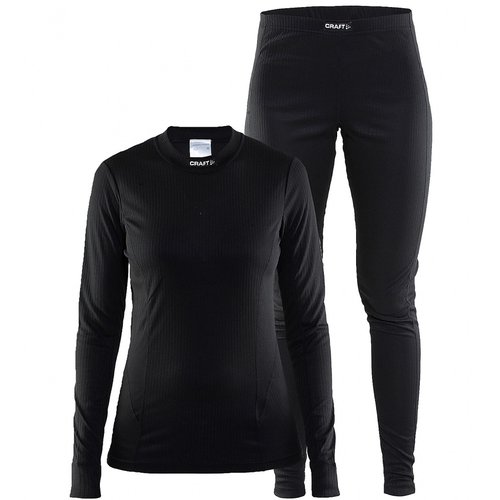 Craft Be Active Damen-Funktionswäsche-Set schwarz Das Unterwäscheset in Schwarz für Sportlerinnen, die gern an ihre Grenzen gehen: das ist das Craft Be Active Multiset bestehend aus Crewneck-Longsleeveshirt und langen Underpants. Die legere Passform bietet viel Bewegungsfreiraum und macht die Funktionswäsche perfekt für alle Sportarten im Temperaturbereich zwischen kühl und kalt. Mit der Craft Be Active Ski-Unterwäsche wird überflüssige Schwitzfeuchtigkeit abtransportiert, damit sie an der Oberfläche verdunsten kann. So hält dich Be Active stets trocken und warm und du kannst dich voll und ganz auf deine sportlichen Leistungen konzentrieren. Produktdetails Damen-Funktionswäsche-Set lange Hose & Langarmshirt Rundhalsausschnitt sehr gutes Feuchtigkeitsmanagement für mittlere bis kühle Temperaturen baumwollähnlicher Griff bequeme Passform Material: 100% Polyester zweiflächiger Strick mit Kapillargefälle waschbar bei 40°C