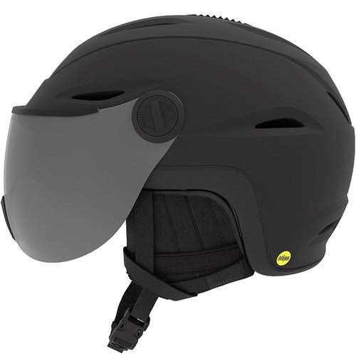 Giro Vue MIPS - Skihelm inklusive Visier Allgemeine Produktdetails Unisex-Schneehelm Seamless Compatibility: perfektes Zusammenspiel aus Helm und Schutzvisier integriertes Visier mit optionaler Positionseinstellung, kann nach Belieben gewechselt werden (Scheiben separat erhältlich) Kaminentlüftung für die Skibrille verschiedene aktive und passive Belüftungselemente sorgen für hervorragendes Helmklima und beschlagfreie Nutzung Schieberegler bestimmt die aktive Belüftungseinrichtung mittels unkomplizierter Einhandbedienung gepolstertes, waschbares Innenfutter aus Polarfleece und Mesh einstellbare Passform mittels Größendrehrad am Hinterkopf Helmrückseite mit zarter Nut, in der exakt ein Brillenband Platz findet individuell einstellbarer Kinngurt mit Polsterung und klassischem Schnallenverschluss abnehmbare, audiokompatible Ohrenpolster sorgen für Wärme und Komfort inklusive Verstaubeutel und Visorsocke zum Schutz des Helmes Logo-Applikationen Technische Details In-Mold-Konstruktion: Polycarbonat-Außenschale und EPS-Innenschale sind zu einer einheitlichen Form verbunden, leicht und langlebig MIPS - Multi-Directional Impact Protection System: leitet Aufprallenergie durch eine rotierende Helmzweitschale über den gesamten Helm ab Thermostat Control: Be- und Entlüftungsmöglichkeiten mittels Schieberegler Belüftungseinrichtungen regulierbar: 6 Belüftungseinrichtungen insgesamt: 14 In Form Fit-System: Vertikale Einstellung der Passform via Einstellrädchen am Hinterkopf Polartec Powergrid-Polsterung: atmungsaktiv, schnelltrocknend und wärmespeichernd kompatibel mit Giro-Audiosystemen by Outdoor Tech nahtlose Brillenkompatibilität zu allen Giro-Brillen Gewicht: 525 g @Gr. M Eigenschaften des Visiers integrierte und verstellbare, sphärische Scheibe Scheibenfarbe: Silber-Grau Basislinsenfarbe: Neutral Schutzstufe: S2, verspiegelt Lichtdurchlässigkeit: 19-42%, geeignet bei wechselnden Lichtverhältnissen (Sonne-Wolken-Mix) vollständiger Schutz vor UVA-, UVB-, und UVC-Strahlen bis zu einer Wellenlänge von 400 nm Anti-Fog: Beschichtung gegen Brillenbeschlag 3-lagiger Schaum inklusive Fleecelage fürs Gesicht