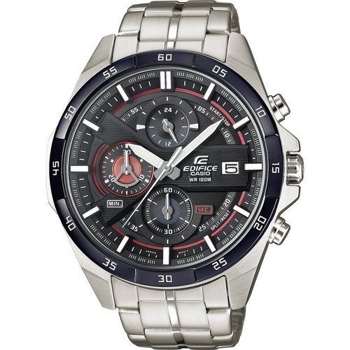 ÜberblickDatumsanzeigeStoppfunktion Edelstahlarmband mit SicherheitsschließeBeschreibungEDIFICE steht für klassische Eleganz und innovative Technik. Nicht umsonst lautet das Motto ",Speed &, Intelligence",. Die hochwertige Analog-Uhrenmarke aus dem Hause CASIO bringt mit High-Tech-Funktionen, sportlich-eleganten Designs und visionären Ideen maximale Präzision und modischen Stil an das Handgelenk seines Trägers. Die Marke beansprucht für sich, aktuellen Trends immer etwas voraus zu sein. Das Designprinzip folgt dabei stilvoller Schlichtheit und setzt gleichzeitig interessante Detail-Akzente in Farben und Formen. Die hochwertige Verarbeitung aus ausgesuchten Materialien erfüllen höchste Qualitätsstandards. Alle EDIFICE Uhren sind mit einem hochwertigen Vollmetallgehäuse ausgestattet und verfügen über eine Wasserdichtigkeit bis 10 BarEigenschaftenNeo-DisplayDatumsanzeigeStoppfunktion - 1/1 s - 30 min.LieferumfangArmbanduhr +, Bedienungsanleitungzettel