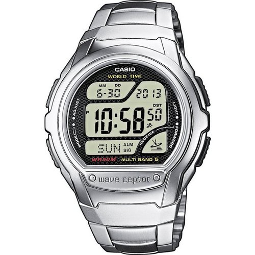 ÜberblickPräzise Uhrzeit durch FunktechnikEdelstahlarmband mit Sicherheitsschließe5 Bar wasserdichtBeschreibungSehr flach und dabei voll auf der Höhe der Zeit - Das sind die CASIO Funkuhren mit massivem Edelstahlgehäuse, die sich auch technisch sehen lassen können, dank Funkempfang in Europa, USA, Japan und China. Die WV-58DE verfügt über eine Edelstahl-Resin-Gehäuse sowei ein Edelstahlarmband. Die Funkuhr mit Digitalanzeige ist zudem mit der Weltzeit Funktion sowie einer mehrsprachigen Wochentagsanzeige ausgestattet - ein praktischer ReisebegleiterEigenschaftenIlluminatorFunksignalempfänger (EU, USA, Japan)Weltzeit FunktionStoppfunktion - 1/100 s - 1 Std.Timer - 1/1 min. - 1 Std.LieferumfangArmbanduhr +, Bedienungsanleitungzettel