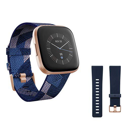 FitbitVersa 2, Special Edition, Gesundheits- und Fitness-Smartwatch mit Alexa Sprachsteuerung, Schlafindex und Musikfunktion, inklusive Zusatzband in Nachtblau, Marineblau/Rosa