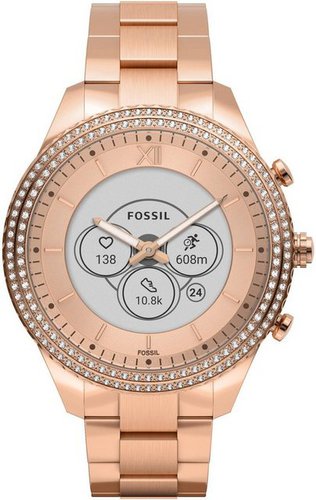 Farbe Farbe , roségoldfarben, | Stromversorgung Batterie-/Akku-Technologie , Lithium-Ionen (Li-Ion), |Spannung Akku , 3,88 V, | Technische Daten WEEE-Reg.-Nr. DE , 57187297, | Netzwerk- und Verbindungsarten Bluetooth-Version , 5.0, | Betriebssystem / Software Kompatible Betriebssysteme , Android Android 8.0 Android 9.0 iOS 12 iOS 12.2 iOS 13, |Smartphone App , Fossil Hybrid Smartwatches (Hybrid App), | Stromversorgung Akkukapazität , 49 mAh, |Anzahl Akkus , 1 St., | Material Armbandmaterial , Edelstahl, |Gehäusematerial , Edelstahl, | Armband Verschluss Armband , Faltschließe, | Farbe Armbandfarbe , roségoldfarben, |Gehäusefarbe , roségoldfarben, |Zifferblattfarbe , roségoldfarben, | Stromversorgung Leistung Akku , 0,18 Wh, |