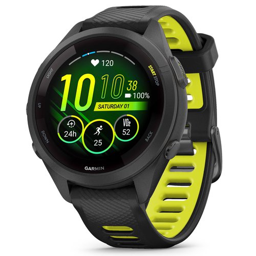 TRAIN BRILLIANTLY MIT DEM HELLEN AMOLED TOUCHDISPLAY DU WILLST DEINE PACE VERBESSERN UND DEINE LEISTUNG STEIGERN? MIT DER FORERUNNER® 265 SERIE KOMMST DU DEINEN PERSÖNLICHEN ZIELEN SCHRITT FÜR SCHRITT NÄHER. AUF DEM HELLEN AMOLED TOUCHDISPLAY LASSEN SICH ALLE LEISTUNGS- UND GESUNDHEITSDATEN EINFACH ABLESEN. UND AUCH IM ALLTAG HAST DU DANK SMARTEN FEATURES DEN IDEALEN BEGLEITER AM HANDGELENK. 1,1 ZOLL AMOLED FARBDISPLAY BIS ZU 20 STUNDEN AKKULAUFZEIT IM GPS-MODUS PHYSIOLOGISCHE MESSWERTE UND ERHOLUNGSINFOS SATIQ™ UND MULTI-FREQUENZ EMPFANG TOUCHDISPLAY UND TASTEN GENIESSE DEINE LIEBLINGSSONGS MORNING REPORT Erhalte gleich am Morgen einen Überblick über deinen Schlaf1 und die Trainingsaussichten zusammen mit Informationen zum HFV Status und zum Wetter. Passe den Bericht sogar deinen Wünschen entsprechend an. WETTKAMPF KALENDER Bereite dich auf deinen nächsten Wettkampf vor. Ob 10K oder Marathon - die täglichen Trainingsempfehlungen passen sich dann unter Berücksichtigung der Wettkämpfe an und basierend auf der Strecke, deiner Fitness und mehr wird deine Zielzeit geschätzt. TÄGLICHE TRAININGSEMPFEHLUNGEN Erhalte individuell erstellte Trainingspläne. Nach jeder Laufeinheit werden die Angaben auf deine Leistung und Erholung sowie auf Wettkämpfe, die laut deinem Garmin Connect™ Kalender anstehen, abgestimmt. TRAININGSBEREITSCHAFT Die Trainingsbereitschaft kombiniert deine akute Trainingsbelastung mit weiteren Gesundheitsdaten wie Erholung, Schlaf oder Stress und ordnet deine Bereitschaft fürs nächste Training individuell ein. TRAININGSZUSTAND Mit Indikatoren wie HFV Status, Trainingsprotokoll und Leistung erhältst du Einblicke in deine allgemeine Anstrengung. Schon weißt du, ob du beim Training deine Form aufbaust, in Höchstform oder aber ermüdet bist. HFV STATUS Zeichne Herzfrequenzvariabilität. während des Schlafens auf und erhalte ein klareres Bild deiner allgemeinen Gesundheit, deines Trainings und deiner Erholung. Die Funktion basiert auf einer Technologie, die von unserem Firstbeat Analytics™ Team entwickelt wurde. PLANUNG GARMIN COACH Starte ein interaktives Training und lass dir kostenlose adaptive 5K-, 10K- und Halbmarathon-Trainingspläne von erfahrenen Trainer*innen erstellen. ERHOLUNGSZEIT Finde heraus, wie lange du dich erholen solltest, bevor du dein nächstes intensives Workout absolvierst. Ausschlaggebend ist dabei dein letztes Training. STRECKEN In der Garmin Connect App kannst du Strecken erstellen, nach bereits vorhandenen Strecken suchen oder Strecken von deinen bevorzugten Drittanbieterplattformen synchronisieren. SCHLAFANALYSE MIT SLEEP SCORE Erfahre, wie gut sich dein Körper erholt und erhalte Informationen zu Schlafstadien sowie detaillierte Einblicke zur Optimierung der Schlafqualität. BODY BATTERY™ Miss die Energiereserven deines Körpers, damit du weißt, wann die besten Zeiten sind, um aktiv zu sein oder sich zu erholen (1). LAUFZEIT-PROGNOSE Erhalte Informationen zu deiner potenziellen Pace für einen 5K, 10K, Halbmarathon oder Marathon. MENSTRUATIONSZYKLUS-TRACKER Verfolge und speichere Informationen zu deinem Menstruationszyklus oder deiner Schwangerschaft und erhalte so Informationen zu Training und Ernährung. VORBEREITUNG LAUFEFFIZIENZDATEN AM HANDGELENK Dein Forerunner misst wichtige Laufeffizienzdaten wie Schrittfrequenz, Schrittlänge, Bodenkontaktzeit u.v.m. HERZFREQUENZMESSUNG Deine Herzfrequenz wird regelmäßig aufgezeichnet und hilft dir dabei einzuschätzen, wie hart du während Aktivitäten trainierst1. AKUTE BELASTUNG Vergleiche deine Trainingsbelastung der letzten Zeit mit dem optimalen Bereich, um deine Fitness zu verbessern. TRAINING EFFECT Sieh dir an, wie sich deine Trainingseinheiten auf Ausdauer, Geschwindigkeit und Leistung auswirken. LEISTUNGSZUSTAND Erhalte während des Laufens eine Analyse von Pace und Herzfrequenz. Das bietet dir in Echtzeit eine Einschätzung deiner aktuellen Leistungsfähigkeit. VO2MAX Sieh dir dein aktuelles Fitnesslevel an und verfolge langfristig Veränderungen, um dir Ziele zu setzen, deinen Fortschritt auszuwerten u.v.m. INTENSITÄTSMINUTEN Speichere deine moderaten und intensiven Aktivitätsminuten. HEALTH SNAPSHOT™ Absolviere eine 2-minütige Sitzung, um wichtige Gesundheitsstatistiken aufzuzeichnen, und erstelle dann einen Bericht, den du mit deinem Arzt teilen kannst. STRESSLEVELMESSUNG Finde heraus, was für eine Art Tag du hast: einen ruhigen, einen ausgeglichenen oder einen anstrengenden Tag. PULSE OX SENSOR Speichere den Sauerstoffgehalt im Blut um die Akklimatisierung in der Höhe zu überprüfen oder eventuelle Atemschwierigkeiten im Schlaf zu erkennen.(2). TRAININGSANWEISUNGEN Erhalte Hinweise zu deiner Leistung und sogar Anweisungen während deiner Trainings. WORKOUTS Auf dem Forerunner 265 sind kostenlose HIIT, Kraft-, Cardio-, Yoga- und Pilates-Trainings vorinstalliert, damit du Abwechslung in deine Workouts bringen kannst. PERFORMANCE RUNNING POWER AM HANDGELENK Sieh dir an, wie viel Leistung du auf den Trail oder die Straße aufbringst. So kannst du deine Anstrengung regeln und noch optimaler trainieren. SATIQ™-TECHNOLOGIE UND MULTI-FREQUENZ EMPFANG Erhalte eine hochpräzise Streckenaufzeichnung und optimierte Akkulaufzeit. PACEPRO™ Plane deine Strategie für den Wettkampftag mit GPS-basierten Pace Informationen für eine bestimmte Strecke oder Distanz. INTEGRIERTE SPORT-APPS Nutze mehr als 30 integrierte Aktivitäten, darunter Radfahren, Freiwasserschwimmen, Krafttraining u.v.m. LAUFBAHN TRAINING Zeichne genaue Rundendistanzen auf und zeige die Distanzen in Metern an. TRIATHLON- UND MULTISPORT-APPS Ändere per Knopfdruck die Sportart. Verwende dabei integrierte Profile oder erstelle eigene. IMMER IN VERBINDUNG MUSIK AM HANDGELENK Lade Songs und Playlisten aus deinem Spotify- oder Deezer-Konto herunter, um ohne Smartphone Musik zu hören. SICHERHEIT UND TRACKING Wenn du dich nicht sicher fühlst oder deine Smartwatch einen Unfall erkannt hat, wird eine Nachric