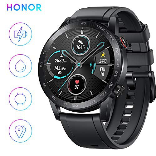 HONOR Smartwatch Magic Watch 2, 46 mm Fitness Tracker Armband, Amoled Touchscreen, GPS, Fitness Armbanduhr, Herzfrequenzmessung, 5 ATM wasserdicht, Schwarz
