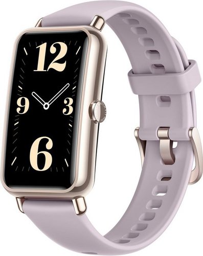 Farbe Farbe , Taro Purple, | Bildschirm Bildschirmdiagonale in Zentimeter , 3,73 cm, |Bildschirmfarbe , farbig, |Bildschirmdiagonale in Zoll , 1,47 ", |Bildschirmtechnologie , AMOLED, |Bildschirmbedienkomfort , Touch-Display, |Bildschirmauflösung in Pixel , 368 x 194 px, | Funktionen Sensoren , 6-Achsen-Beschleunigungssensor Gyroskop Herzfrequenzsensor, |Sensorfunktionen , Beschleunigungsmessung Herzfrequenzmessung, |Benachrichtigungen , Anruf-Benachrichtigung Nachrichten, |Bedienelemente , Bedienknopf Touch-Display, |Antrieb , Akku, |Uhrzeitanzeige , analog, |Zusatzfunktionen , Aktivitätstracking Atemübungen Laufaufzeichnung Schlaftracking Schwimmtracking Stress-Monitoring, | Hinweise Sprachen Bedienungs-/Aufbauanleitung , Deutsch (DE), | Technische Daten WEEE-Reg.-Nr. DE , 39372368, | Netzwerk- und Verbindungsarten Netzwerkverbindungsart , Bluetooth, |Bluetooth-Version , 5.0 5.0 BLE, | Betriebssystem / Software Kompatible Geräte , Android Smartphones iPhone, |Kompatible Betriebssysteme , Android 6.0+ ios 9+, | Stromversorgung Akkukapazität , 180 mAh, |Stromversorgungsart , Akku (fest eingebaut), |Aufladezeit (vollständig) , 1 Std., |Auflademethode , Ladegerät, |Akkulaufzeit Stand-by , 336 Std., |Anzahl Akkus , 1 St., | Gehäuse Wasserdicht , 5 ATM, |Form , eckig, | Material Armbandmaterial , Fluorelastomer, |Gehäusematerial , Aluminium, | Armband Passend für einen Handgelenkumfang bis zu , 20 cm, |Verschluss Armband , Dornschließe, |Armbandlänge , 11,3 cm, | Maßangaben Gehäusebreite , 25,91 mm, |Gehäusehöhe , 11,04 mm, |Gehäuselänge , 51,52 mm, |Gewicht , 20 g, | Allgemein Zubehör im Lieferumfang , Garantiekarte Ladekabel Ladestation Schnellstartanleitung Sicherheitsinformationen, | Farbe Armbandfarbe , Taro Purple, |Gehäusefarbe , Light Gold, |Zifferblattfarbe , schwarz, | Hinweise Sprachen Menüführung , Deutsch, |
