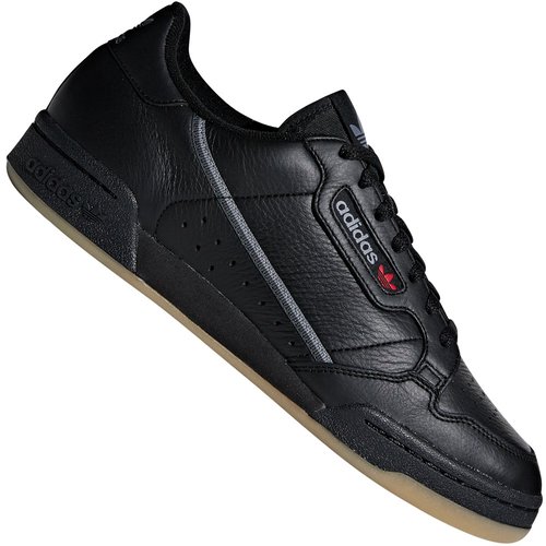 adidas Originals Continental 80 - Sneaker - Black/Grey Three Mit dem Style der 80er Jahre eroberst du von nun an die Straßen deiner City. Getreu dem Motto Back to Black" ziert den adidas Originals Sneaker lediglich ein schmaler textiler Streifen entlang der Seiten sowie Logoapplikationen im dezenten Grau. Durch eine Perforierung im Bereich der Zehen und den Schuhseiten erlangt der Sneaker an einem äußerst sportiven Erscheinungsbild und ermöglicht zugleich eine sanfte Zirkulation des Innenschuhs. Damit entsteht ein Tragekomfort, welcher dich Tag für Tag auf besonders angenehme Weise begleitet. Der Continental 80 verfügt über einen verstärkten Zehen- sowie Fersenbereich wodurch ein Schutz vor äußeren Einwirkungen entsteht und der Schuh an einer stabilen Form gewinnt. Durch die leichtgewichtige EVA-Mittelsohle werden deine Bewegungsabläufe gedämpft und erfahren durch die profilierte Außensohle an einem zuverlässigen Halt. Produktdetails Unisex-Sneaker Klassisches Schnürsystem Gepolsterter Schuhkragen Wattierte Zunge mit Labelpatch Verstärkter Fersenbereich Perforierung auf der Zehenkappe und am Mittelfuß Vorgeformte Einlegesohle Leichte EVA-Mittelsohle Cupsohle mit EVA-Element und Labelprägung Logodetails Obermaterial: Leder, Synthetik Futter: Textil Sohle: Synthetik "