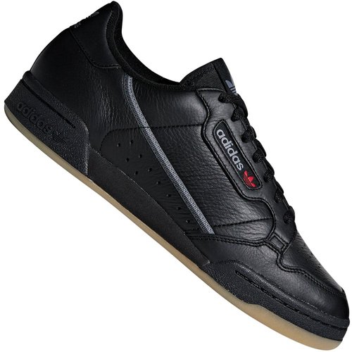 adidas Originals Continental 80 - Sneaker - Black/Grey Three Mit dem Style der 80er Jahre eroberst du von nun an die Straßen deiner City. Getreu dem Motto Back to Black" ziert den adidas Originals Sneaker lediglich ein schmaler textiler Streifen entlang der Seiten sowie Logoapplikationen im dezenten Grau. Durch eine Perforierung im Bereich der Zehen und den Schuhseiten erlangt der Sneaker an einem äußerst sportiven Erscheinungsbild und ermöglicht zugleich eine sanfte Zirkulation des Innenschuhs. Damit entsteht ein Tragekomfort, welcher dich Tag für Tag auf besonders angenehme Weise begleitet. Der Continental 80 verfügt über einen verstärkten Zehen- sowie Fersenbereich wodurch ein Schutz vor äußeren Einwirkungen entsteht und der Schuh an einer stabilen Form gewinnt. Durch die leichtgewichtige EVA-Mittelsohle werden deine Bewegungsabläufe gedämpft und erfahren durch die profilierte Außensohle an einem zuverlässigen Halt. Produktdetails Unisex-Sneaker Klassisches Schnürsystem Gepolsterter Schuhkragen Wattierte Zunge mit Labelpatch Verstärkter Fersenbereich Perforierung auf der Zehenkappe und am Mittelfuß Vorgeformte Einlegesohle Leichte EVA-Mittelsohle Cupsohle mit EVA-Element und Lapelprägung Logodetails Obermaterial: Leder, Synthetik Futter: Textil Sohle: Synthetik "