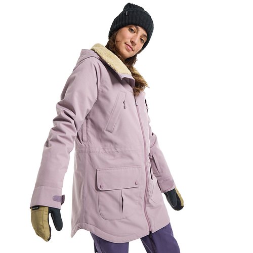 Burton Prowess Winterjacke für Damen in Holunderlila Allgemeine Produktdetails Damen-Snowboardjacke feste, helmkompatible Kontur-Kapuze mit 2-fachem Verstellsystem separater Stehkragen mit weichem Sherpa-Fleece und Kinnschutz via Reißverschluss-Garage durchgehender, zentraler 2-Wege-Front-Reißverschluss mit halblang-unterlegten Sherpa-Fleece interner, textiler Aufhänger mittels Reißverschluss regulierbares Belüftungssystem inklusive Meshfutter unter den Armen ergonomische Ärmelabschlüsse mit Klettverschluss-Regulierung und anliegenden Handgamaschen mit Daumenloch 2 Brusttaschen mit Reißverschluss und Schneeblende 2 Cargo- Fronttaschen mit Reißverschluss, Schneeblende, Microfleece-Futter und Schlüsselhaken 1 Skipass-Ärmeltasche 1 Reißverschluss-Innentasche mit Thermofunktion und Kabelkanal 2 Mesh-Innentaschen interner Verstellzug zur Taillenregulierung fester, ergonomischer und wasserabweisender Hüftschneefang mit Jacke-zu-Hose-Verbindungssystem abgesenkter, halbrunder Saum Logo-Details Wärmelevel: 2/5 Wasserfestigkeit: 2,5/5 Atmungsaktivität: 4/5 Technische Highlights, Material und Passform konzipiert für: Wintersport, Outdoor, Freizeit Wassersäule: 10.000 mm Atmungsaktivität: 10.000 g/m2 2-lagiges DRYRIDE Stretch Material: schnelltrocknend, wasserfest, sehr atmungsaktiv und elastisch Isolierung: Thermacore Eco mit durchgehend 80g, leicht atmungsaktiv und wärmend Futterstoff: Living Lining mit Poren die sich bei Kälte zusammen ziehen und bei Wärme öffnen, optimale Temperaturregulierung vollständig versiegelte Nähte bluesign-Produkt sichert ordentliche Chemikalienverwendung, um umweltfreundliche Rohstoffgewinnung und Herstellung zu gewährleisten Gewebeart: Stretch Polyester Fabric Obermaterial: 100% Polyester Futterstoff: 100% Polyester Passform: Regular Fit - nicht zu weit oder zu eng, geeignet zum Tragen von Zweitschichten Extended Sizing: verlängerte Schnittform, sorgt für bessere Abdeckung und dadurch mehr Wärme