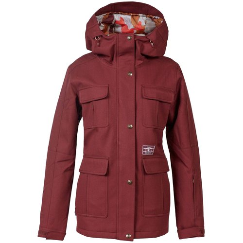 DC Snowboard-Jacke Liberate für Damen in Rotbraun Produktdetails Damen-Skijacke Modernes und minimalistisches Design Weather-Defense-Imprägnierung Wassersäule: 15.000mm Atmungsaktivität: 10.000g/m2 Warmhaltender und schnelltrocknender Stoff Ultraleichte, langanhaltende und atmungsaktive Wärme Glänzend, seidiges Taft-Futter Mesh-Belüftungszipper unter den Armen Fest integriertes Powder-Schneefang-System mit Druckknopfverschluss Helmkompatible, feste Kapuze 2-Fach-verstellbar mittels Kordelzug-System Durchgehender Frontzipper mit Windschutzblende und Dekorknöpfe Nahtversiegelung an kritischen Stellen Befestigungssystem für Jacke-zu-Hose Tunnelzug Saum 2 Fronttaschen mit Klett und extra seitlichen Reißverschluss-Eingang zum Handwärmen mit Fleece gefüttert 2 Brusttaschen mit Klettverschluss Goggle-Netztasche innen Dezente Logodetails Passform: Regular Material: 100 % Polyester Futter: 100 % Polyester Füllung: 100 % Polyester