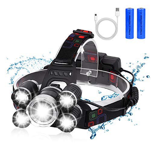 BRIGENIUSUSB Wiederaufladbare Stirnlampe Kopflampe 5LED Zoom 1000 Lumen und 2 wiederaufladbaren Batterien wasserdichtstirnlampen Perfekt fürs Angeln,Radfahrer, Campen,für Kellerr und mehr