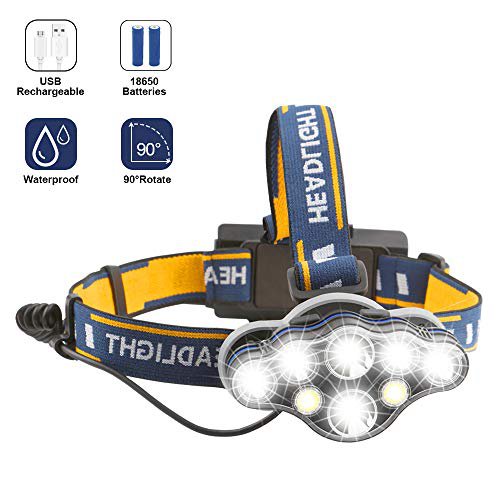 【Super heller 8 LED mit rotes Warnlicht und starkere Helligkeit】: Super hellere 8 LED und hochwertige Verarbeitung wird verwendet und diese Stirnlampe mit hoherer Helligkeit, breiterer Leuchtweite. Es bietet größere Lumen Super helle Licht und einen 600-900m Lichtstrahl, so dass Sie die Umgebung deutlicher sehen können.Es gibt die rote Warnlicht am Batteriebox,Auch zum Laufenund Nachtreiten geeignet\n【Um 90°drehbar und 8 Licht MODI】Der Lampenkopf kann um 90°nach unten drehen und diese Kopflampe verfügt über 8 Licht Modi ,so dass Sie nach den Bedürfnissen die Licht MODI und Richtung einstellen können.Das macht es ideal für drinnen und draußen. Außerdem ist es mit einem hochwertigen Gummiband für eine einfache Einstellung und Installation ausgestattet, nicht rutschend, was es für Erwachsene und Kinder bequem macht.\n【Wasserdicht und Multifunktion】 Wasserdichte LED-Stirnlampe schützt vor Spritzwasser von überall her, ohne dass Sie sich um Regen oder Schnee sorgen müssen. Der hochwertige Batteriekasten ist mehr versiegelt, um ein Auslaufen von Wasser zu verhindern. Sehr gut geeignet für nächtliche Spaziergänge, Laufen, Radfahren, Wandern, Camping, Klettern, Angeln.\nProduktverpackung: Kartonverpackung, 2 Batterien, 1 USB, 1 8 LED-Scheinwerfer\n【100% Zufiedenheitgarantie】 Alle Kunden genießen eine 30-tägige Geld-zurück-Garantie. Kunden können zurückkehren und eine Rückerstattung erhalten, falls der Kauf von unsere Stirnlampe aus irgendeinem Grund nicht zufriedenstellend ist. Sie haben kein Risiko, es zu versuchen.