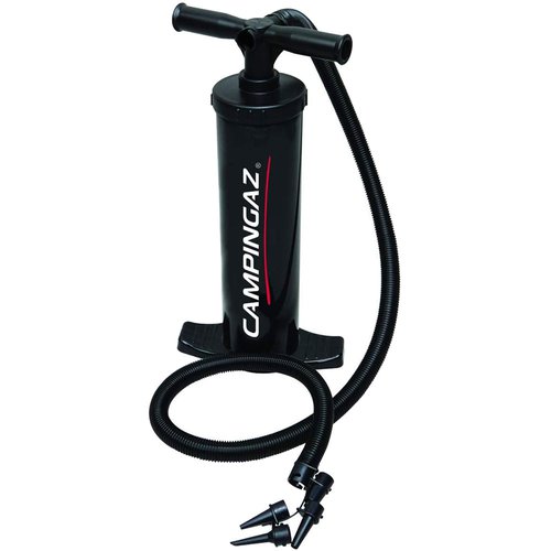 Standpumpe von Campingaz - Dual Action Quickpump Mit der Handpumpe von Campingaz kannst du all deine Wassersportgeräte, Luftbetten oder ähnlichen Utensilien aufpumpen. Dabei handelt es sich bei der Dual Action Quickpump um eine Doppelfunktionspumpe, mit der zu sowohl Luft aufpumpen als auch ablassen kannst. Zu der Luftpumpe erhältst du einen flexiblen Schlauch, an welchen 4 unterschiedliche Ventilaufsätze angebracht werden können. Dank des Standfußes steht die Pumpe stabil und kann nach dem Gebrauch in einer Transporttasche mit Kordelzug untergebracht werden. Produktdetails Doppelfunktionspumpe Zum Aufpumpen und Luft ablassen Adapter für die meisten Ventile (u.a. Boston-, Pinch-, Coleman-, Doublelock-Ventil) Flexibler Pumpenschlauch Robuster Kunststoffgriff Stabiler Standfuß Lieferumfang: 1 Luftpumpe,1 Pumpenschlauch, 4 Ventilaufsätze, 1 Transportsack