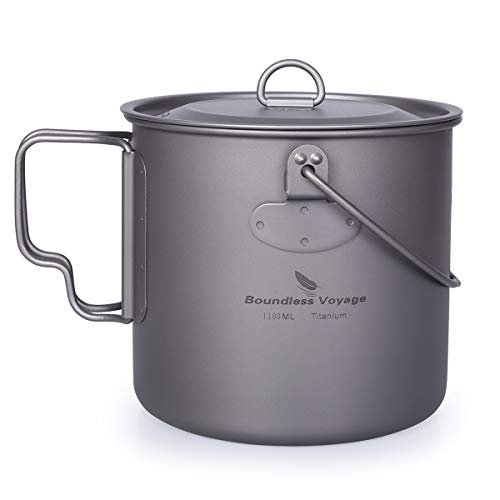 iBasingo Titan Tasse Camping Hängetopf mit Deckel Klappgriff Spork Outdoor Ultraleicht Kaffee Wasser Becher Picknick Kochgeschirr für den täglichen Gebrauch Rucksackreisen 1100ml Ti15109I