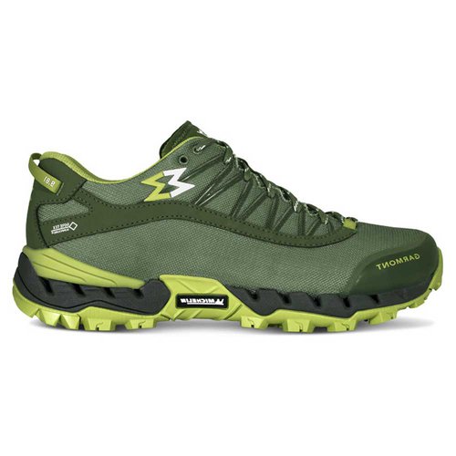 Schuhe für aktive Benutzer, die normalerweise verschiedene schnelle Aktivitäten in den Bergen abwechseln. Das Obermaterial aus sublimiertem Netzgewebe verwendet zertifiziertes Econyla-regeneriertes Nylon aus Abfällen wie in den Ozeanen aufgegebenen Fischernetzen und anderen Nylonabfällen. Die innovative Gore Tex´ Surround´ Technologie bietet hervorragende Wasserdichtigkeit und Atmungsaktivität, während die Michelin´s freie Quersohle dank der differenzierten Stollen einen optimalen Halt auf gemischtem Gelände gewährleistet.Eigenschaften:Obermaterial aus synthetischem Stoff für verbesserte Atmungsaktivität. Stoff aus regeneriertem Econylr-Nylon, einem speziellen und haltbaren Nylongarn Die Pli-Zehenkappe bietet Aufprallschutz, während die synthetischen Einsätze am Körper des Oberteils die Struktur verbessernGore Tex´´ Surrounds Technolcm Für Rundum-Atmungsaktivität und wasserdichten SchutzPCJ-Fußbett mit Feuchtigkeits- und GeruchseigenschaftenTpi_J Stabilizer Attheheel für mehr Seitenstabilität und Sicherheit beim FußschlagMicheline Free Cross-Außensohle mit tiefen und aggressiven Stollen für hervorragenden Grip und verbesserte Bodenkontrolle.Spezifikationen:Gewicht: 350 gSchutz: 3/5Leichtigkeit: 5/5Unterstützung: 2/5Steifheit: 2/5Atmungsaktivität: 4/5