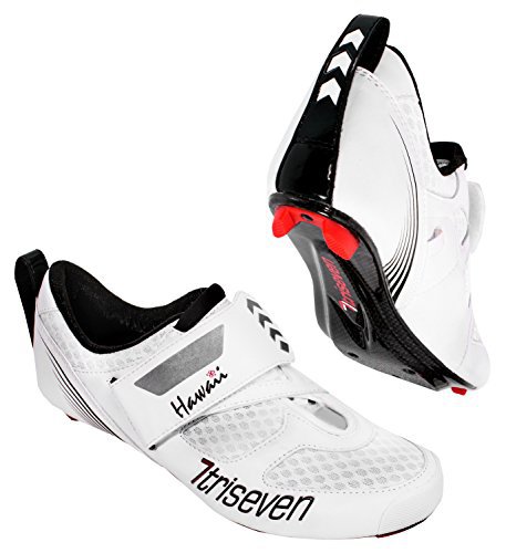 TriSeven triseven Premium Carbon Triathlon Radschuhe - Ultraleicht, Atmungsaktiv und Carbon Sohle | der schnellste Schuh in der Übergangszone! (45) , Weiß