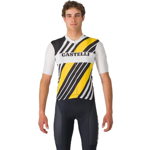 ### In Castellis knapp 150-jähriger Geschichte haben sie einige der legendärsten Trikot-Designs entworfen. Das auf ihrem Ausgangsmodell Competizione 3 Jersey basierende Heritage Jersey ist eine Hommage an ihre Vergangenheit mit diesen klassischen Designs. Es sieht nicht nur gut aus, es ist auch das ideale Rundum-Trikot für alle Deine Touren: Es bietet Tragekomfort während des Trainings und Geschwindigkeit bei Gruppenfahrten oder in Rennen. Die Passform ist nicht zu eng und das Material ist dehnbar genug, um für jede Statur zu passen. Das Strada-Micromesh auf Vorder- und Rückseite sowie an den Ärmeln fördert ein kühles und trockenes Körperklima. Die Taschen sind geräumig, damit alles, was Du für Deine Tour benötigst, auch unterkommt und wurden so konzipiert und platziert, dass Du auf dem Rad leicht darauf zugreifen kannst. Der YKK® Vislon®-Reißverschluss ist leichtgängig. Dieses wird Dein Lieblingstrikot, wenn Du mit Stil radeln möchtest.