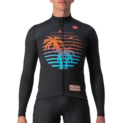 Castelli Hollywood Long Sleeve Cycling JerseyThe Castelli Hollywood Long Sleeve Cycling Jersey is a bright and brilliant pick for when temperatures begin to fade. Cosy fabrics and a streamlined fit make for all-day cycling comfort. Castelli Special CollectionAs we look forward to cooler temperatures and less predictable weather, it's time to delve into the Castelli special collection of winter cycling kit. With a focus on performance and style, these pieces give you warmth and comfort alongside exclusive designs that stand out amongst the rest.Winning Winter WarmthThe body of the Hollywood Long Sleeve Cycling Jersey benefits from the use of Castelli's super-cosy Warmer fabric. The soft fleecy interior is incredibly comfortable and retains body heat for all-ride warmth. It's also got great moisture control, preventing clamminess as you dig deep and put in some harder efforts. And if you do find yourself overheating, a smooth-sliding YKK® Vislon® zipper keeps you in control of ventilation.The sleeves and sides meanwhile use Warmer X-Stretch. This is also cosily warm but also gives a smooth and streamlined fit to the jersey. Whatsmore, the stretch lets you move easily too, perfect as you jump in and out of the saddle. As you'd expect of a Castelli, all the details are perfectly in place too. To the back of the jersey, the 3 dropped pockets offer ample space for all your cool-weather cycling essentials, from multi-tool to spare tube to an emergency rain jacket or gilet. Reflective trim keeps you visible as daylight fades and gripper elastic at the waist keeps the fit smooth.For cycling in cooler weather, this is a jersey you can trust, offering dependable warmth and comfort all day long. Features:Materials: 100% PolyesterWarmer fabric on the bodyWarmer X-Stretch on sleeves and side panelsCovered YKK® Vislon® zipperGripper elastic at waist3 rear pocketsReflective viz strips for visibilityWeight: 223gSuggested temperature range: 12 to 18 degrees CBuy Castelli Clothing from Chain Reaction Cycles, the World's Largest Online Bike Store.