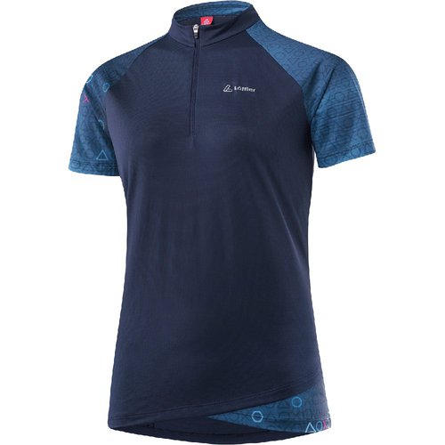 **Leichtes und elastisches Radtrikot für aktive Bikerinnen.** Dieses Radtrikot überzeugt mit weichem Tragekomfort, Stehkragen, Halfzip, Raglanschnitt, Zip-Rückentasche, offenen Armabschluss, asymmetrischem offenen Bundabschluss und Reflektoren.