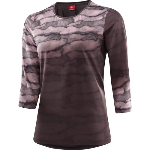**Leicht, elastisch, schnell trocknend und atmungsaktiv.** Weiches Mountainbike-Trikot für Damen mit Motivprint vorne, Rundhals, 3/4 langen Ärmeln und Reflektoren.