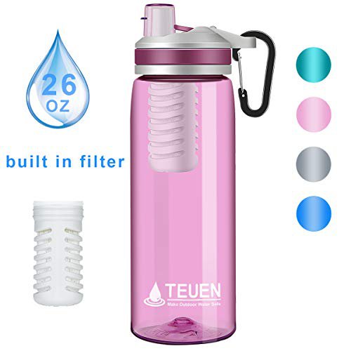 Trinkwasseraufbereitung für den Täglichen Gebrauch: Kann Leitungswasser filtern und direkt trinken. Die auslaufsichere Trinkflasche aus BPA-freiem Tritan fasst 0,77 Liter. Der filtert bis zu 2000 Liter Wasser. und verfügt über einen lebensmittelechten Silikonmundstückstrohhalm.\nHohe Filtrationsleistung: Entfernt 99,9999% aller Bakterien wie Salmonellen, Cholera und E. coli; Entfernt 99,9999% aller Protozoen wie Giardia und Cryptosporidium. Der übertrifft die EU- und EPA-Filterstandards. um sicherzustellen, dass Ihre Familie, Freunde und Sie gut für Ihre nächste Reise oder Camping.\nSicheres Wasser: Wasserfilter flasche outdoor für die meisten Wasserquellen im Freien geeignet, kann effektiv Seen, Flüsse, Quellen und Bäche in Trinkwasser verwandeln. (Hinweis: Meerwasser, kohlensäurehaltige Getränke und industriell verschmutztes Wasser können nicht gefiltert werden.) Es kann Sie durch die 0,01 Mikrometer UF-Membran vor Bakterien und Protozoen schützen.\nSparen Sie Geld und Reduzieren Sie Plastikmüll: Ein wasseraufbereitung filter camping entspricht 4000 Flaschen mit 500 ml Wasser. Damit ist es nicht notwendig, umweltschädliche Plastik-Wasserflasch. Durch austauschbare Filter sparen Sie Geld da die Wasserflaschen selbst eine sehr lange Lebensdauer haben.\nGuter Assistent für Camping: TEUEN survival wasseraufbereiter trinkflasche ist ein unentbehrliches Accessoire für Outdoor, Wander, Camping, Trekking, Reise, Survival Familie, Rucksack Ausrüstung und Notfälle. Mit Karabiner, Sie können die wasserflasche filter am Rucksack oder an einem beliebigen Ort aufhängen. leicht zu tragen.