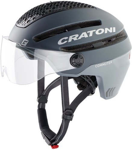 Der Commuter von CRATONI trägt seinen Einsatzbereich bereits im Namen. Denn der Commuter ist der Helm-Profi für alle Pendler. Er brilliert mit einer extrem komfortablen Passform und maximalem Tragekomfort und zieht damit dem letzten Helmmuffel den argumentativen Zahn. Die futuristische Optik des Commuter sorgt für den Extra-Style auf dem Radweg oder auf der Straße und bietet bestmöglichen Kopfschutz. Weil der Commuter großen Spaß macht, wird das Helmtragen nicht zur Pflicht, sondern zur Kür. Er ist der zuverlässige Begleiter auch auf dem E-Bike und verfügt über die Pedelec-Norm NTA 8776. Mit ihm behält man auch im Großstadt-Dschungel immer den Überblick und die Kontrolle. Im Falle eines Crashs entfaltet er seine volle Schutzwirkung nicht zuletzt dank seinem durchgängigem Downshell und tief gezogenem Heck. Spezifikationen 9 Ventilationsöffnungen Luftkanal mit Schieber regulierbar Visier schwenkbar abnehmbar Gurtband + Logo reflektierend Steplock Schloss 3-fache Höhenverstellung Gurtbandführung für vereinfachtes Aufsetzen Inkl. Rücklicht Inkl. klarem Visier Inkl. Helmbeutel Inkl- Visier Cover Gewicht 510g Inmold Technologie Downshell LFS Größenverstellsystem Air-Channel Technologie inkl. Netzpolster Clean Tex Polster Norm: CE EN 1078 NTA 8776 Clean Tex Polster Norm: CE EN 1078 NTA 8776 Commuter, Cratoni